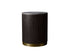 Rundt sidebord i eik med messing fot og blå marmor sten topp.