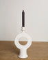 Hvit keramikk lysestake. Tykk, flat sirkel.